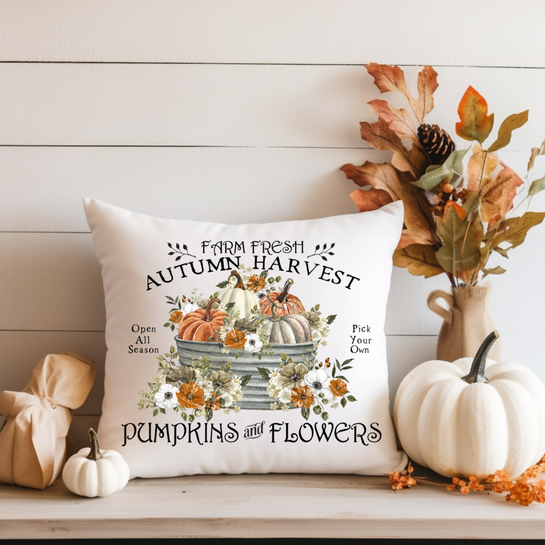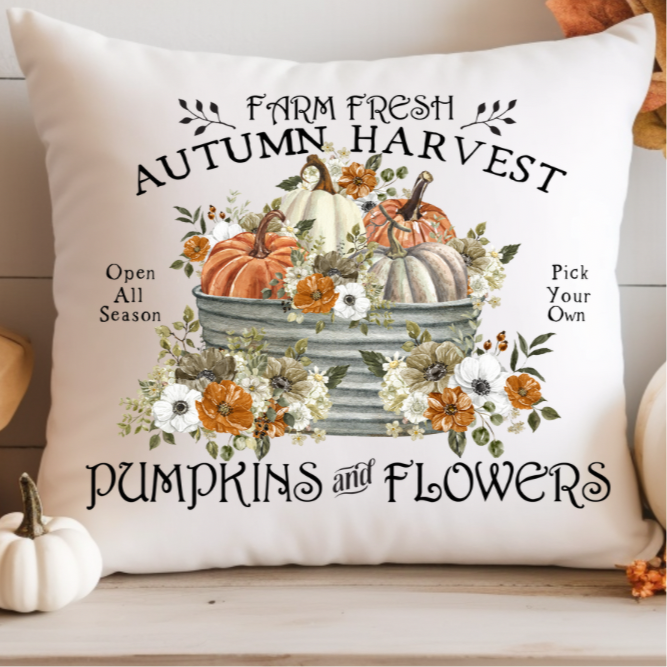 Infuse your space with rustic charm using our Farm Fresh Pillow. Crafted from 100% cotton, this pillow adds a warm, inviting touch to any room. Perfect for adding a cozy accent to your sofa, chair, or bed, this pillow brings a touch of autumnal elegance and timeless style to your home. This pairs beautifully with our other coordinating fall pillows!