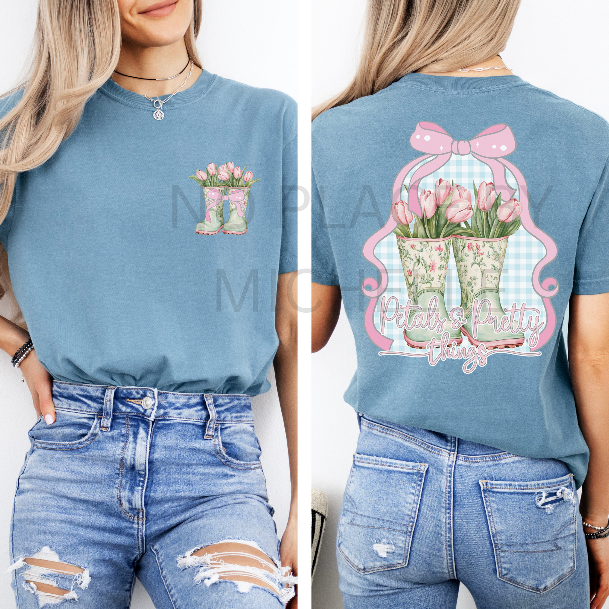 Bring a little Southern charm into your everyday with our Petals & Pretty Things tee. Featuring a vintage-style print of floral rain boots filled with tulips and finished with a soft pink bow, this tee is sweet, stylish, and perfect for the ones who love the little things.